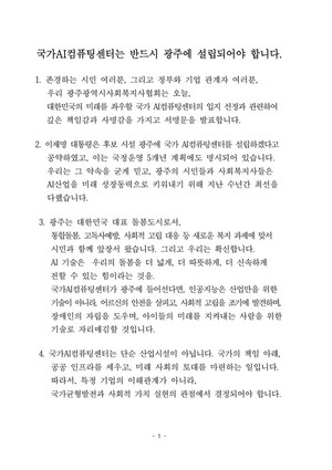 광주광역시사회복지사협회(회장 안병규)는 21일, 국가 AI컴퓨팅센터의 광주 설립을 촉구하는 공식 성명문를 발표했다.협회는 이번 성명을 통해 “국가AI컴퓨팅센터는 산업 인프라를 넘어 국민 모두가 존엄하게 살아갈 수 있는 사회의 토대가 되어야 한다”며, “그 출발지는 바로 복지와 연대의 도시, 광주가 되어야 한다”고 강조했다 협회는 성명문에서 “광주는 통합돌봄, 고독사 예방, 사회적 고립 대응 등 다양한 복지 현안을 시민과 함께 해결해온 대한민국 대표 돌봄도시”라고 밝히며, “AI 기술이 복지와 결합될 때, 돌봄은 더 넓고 빠르게 확산