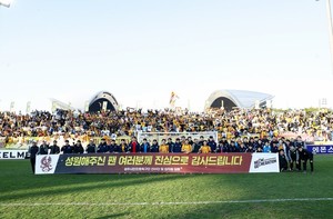 ‘김피디의 비하인드캠’은 유튜브 ‘광주축구’, 광주FC 다큐 ‘2024 옐로스피릿’ 제작자 김태관 PD가 광주FC에 관한 생생한 현장 소식과 그라운드 너머의 흥미진진 뒷이야기를 전하는 코너입니다. 만국 공통어 ‘축구’가 빚어내는 다채로운 재미와 감동을 전달하고자 합니다. 전석 매진된 광주FC의 시즌 최종전 시즌 폐막전이 열린 지난 24일 전북과의 홈 경기. 모처럼 광주축구전용구장이 전석 매진됐다. 구단 안팎으로 어수선한 상황에서도 팬들은 묵묵히 경기장을 찾았다. 어느 팬이 말하길, 개막전에는 객석에 어두운 옷 입은 팬들이 많았는데,