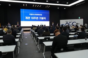 국립아시아문화전당(ACC)이 개관 10주년을 맞아 새로운 10년엔 세계적 문화예술기관으로 도약하겠다는 의지를 다졌다. ACC는 25일 오후 국제회의실에서 ‘내일의 아시아, ACC가 그리다’를 주제로 개관 10주년 기념식을 개최했다. 이번 기념식은 지난 10년의 성과를 돌아보고 새로운 10년을 향한 출발을 알리는 시간으로 마련됐다. 이날 행사에는 이정우 문화체육관광부 문화예술정책실장을 비롯해 주한 인도네시아 공화국 체첩 헤라완 대사, 주한 투르크메니스탄 베겐치 두르디예프 대사 등 ACC 교류 국가 주요 관계자 등 300여 명이 참석했