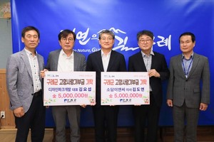 전남 구례군은 디자인파크개발 김요섭 대표와 소담이앤씨 김도연 이사가 지난 26일 구례군에 고향사랑기부금 최고액인 500만 원을 각각 기탁했다고 밝혔다.디자인파크개발은 2001년에 설립한 산업디자인 및 공간 환경 토탈 솔루션 전문 기업으로서 어린이 놀이시설, 생활체육 시설물 등 공원 체육 제조 부문 선도 기업으로 인정받고 있으며, 소담 이앤씨는 테마형 물놀이 시설과 자가발전형 스마트 운동시설 제품을 생산하며 해당 분야에서의 입지를 강화하고 있는 기업이다.김요섭 대표와 김도연 이사는 “기부문화 확산과 지역경제 활성화라는 취지에 공감하여