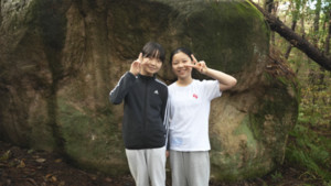 커다란 바위 앞에서 첫 도전을 펼치는 초등학생들. 자신의 체구보다 몇 배나 더 큰 바위를 오르는 것이 두렵기도 하지만, 문제를 해결하며 얻는 성취감에 빠져든 두 학생을 만나봤다. 지난 2일 광주 무등산 선비바위 일대에서 열린 ‘2024 무등산 볼더링 축제’ 현장. 어린 학생들의 열정도 빛났던 이곳에서 처음으로 자연의 바위를 오르며 도전에 정해린(11) 양과 서로하(11) 양. 서 양은 어릴 적, 아빠가 볼더링을 즐기는 모습을 보며 “너무 재미있어 보여서” 시작하게 됐다고 한다. 그런 친구를 보며 “나도 해보고 싶다”고 느낀 정 양.
