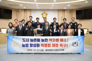 광산구의회(의장 김명수)가 제301회 정례회 제1차 본회의에서 지역의 오랜 구조적 문제들을 바로잡고 시민 안전과 공동체 회복을 위한 다양한 건의안을 일제히 채택하며 주목받고 있다.농업·주민자치·연대경제·교통안전 등 생활 밀착형 의제를 폭넓게 다룬 이번 본회의에서는 실질적 제도 개선을 요구하는 의원들의 목소리가 강하게 울렸다.윤헤영 “도시 농촌동 농민 역차별 더 방치할 수 없다” 윤혜영 의원(더불어민주당, 신흥동·우산동·월곡1·2동·운남동)은 ‘도시 농촌동 역차별 문제 해소 및 농업 활성화 지원에 관한 특별법 제정 건의안’을 대표 발