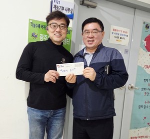 ‘미스터 뚝딱’ 이성훈 대표님께서 ‘더불어 한 끼’ 프로젝트에 사용해달라며 20만 원을 광주재능기부센터에 기부해주셨습니다. ‘더불어 한 끼’는 어려운 형편으로 인해 외식을 하기 힘든 분들을 위해 식사를 하실 수 있도록 식사비용을 지원하는 프로젝트입니다. 기부금을 통해 가족 분들이 식사를 하면서 즐거운 대화를 나눌 수 있도록 하겠습니다. ‘미스터 뚝딱’은 벽에 박는 못 하나부터 하수구 막힘까지 생활의 불편함을 해결해드리는 일을 하고 있습니다. 많은 이용 바랍니다. ‘더불어 한 끼’로 큰 선물을 주신 ‘미스터 뚝딱’ 이성훈 대표님께 감