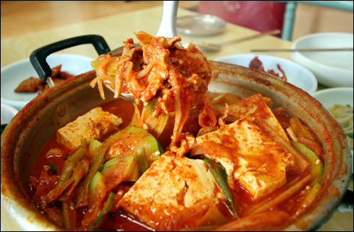 ▶금동 ‘엄마네’ 돼지찌개= 이집은 ‘화끈하게’ 매운 집이다. 입안이 얼얼하고 맑은 침이 한없이 고여나올 정도로 매콤한 ‘돼지찌개’다. 동구 궁동(옛 남도극장 앞) ‘엄마네’. 15년이 넘었다. 예전에 먹었던 단골들이 이제는 전국에 퍼져 있을 것이니, 이 단골들이 광주 오면 꼬박꼬박 옛맛을 찾아 들리는 집이다. “강남에서도 찾아온다”고 주인 하숙진 씨는 말한다. 돼지찌개는 주인이 “어렸을 때 5~6월이면 애호박 숭숭 썰어넣고 돼지고기 볶아서 모내기상으로 내온 음식”을 차려낸 것이다.