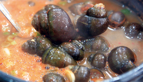 통우렁탕도 좋다. 자연산 우렁이를 껍데기째 넣어 끓인다. 화학조미료 쓰지 않고 천연조미료를 만들어 끓이기 때문에 탕 맛이 순하고 부드럽다. 통우렁이 속을 이쑤시개로 빼먹고 나서 된장국을 먹는 맛이 일품이다.