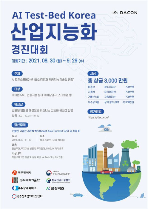 이번 대회는 광주광역시, 광주지방고용노동청이 지원하는 2021년 광주일자리창출 혁신프로젝트 ‘유망기업 미래 핵심기술 융복합 패키지 지원’사업의 일환으로굚 광주창조경제혁신센터, 광주과학기술원, 한국인공지능협회, 광주전남지방중소벤처기업청과 공동으로 개최한다.