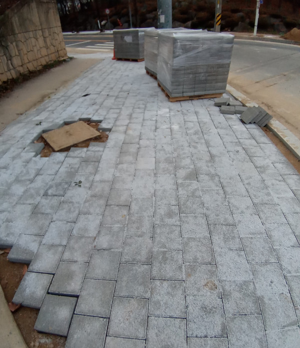 올해도 몇몇 지점에서 보도블럭 공사 현장이 목격된다.