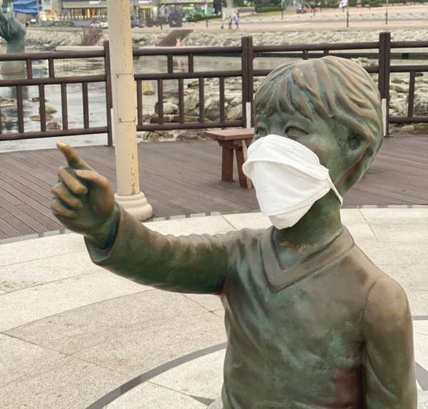 (포항 호미곶 동상과 마스크)
