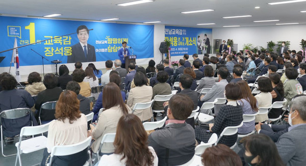 장석웅 전남교육감 예비후보가 ‘전남교육 짱짱하게! 아이들은 당당하게!’를 슬로건으로 내걸며 선거사무소 개소식을 열었다.