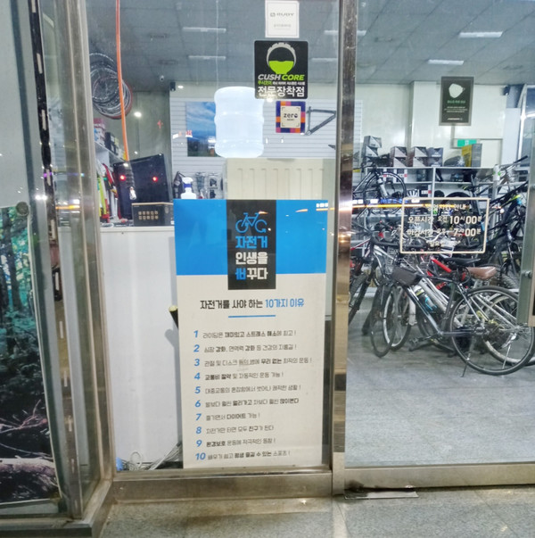 길 가다 어느 자전거 매장에 붙은 게시물에 꽂혀 멈춰선다.