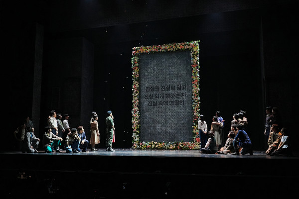 얼마 전 서울 예술의전당 CJ토월극장 무대(4.15~5.1)에 올려진 뮤지컬 <광주>(극본 고선웅·안필단, 연출 고선웅)도 그렇다. 광주항쟁 40주년을 앞둔 2019년, 광주문화재단이 광주에서 벌어진 이 역사적 사건을 뮤지컬로 제작하기로 결정한 것은 그 시간과 공간으로부터 멀어진 세대들에게 보다 생생하게 항쟁을 간접체험할 수 있는 콘텐츠를 제공하겠다는 의도였다.