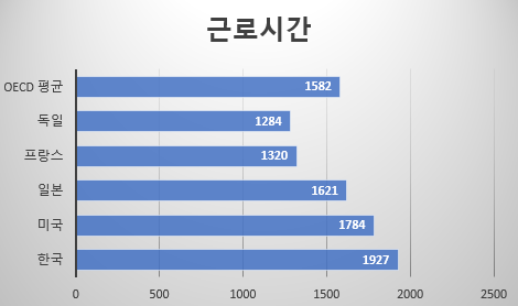 1953년 당시 근로기준법 상 노동시간은 주 6일 하루 8시간 즉 주 48시간을 일하는 것이었다. 하지만 연장근무가 일상인 그 시절에 이 제도는 사실 유명무실했다. 이런 과정에서 노동자의 건강권, 휴식권 그리고 안전에 대한 인식이 제고돼 2003년 8월 주 5일제 법안이 통과되었다. 다만, 급격한 제도 도입의 부작용을 줄이기 위해 7년에 걸쳐 단계적으로 적용범위가 늘어났다.