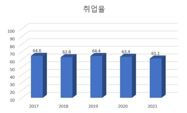 또한 대학에 가는 주요 이유는 취업 때문인데 <그림 1. 맨 상단>에서 보면, 2021년 4년제 대학 평균 취업률은 약 61%이지만, 취업률을 올리기 위해 사용하는 대학들의 꼼수를 감안할 때 대략 50% 혹은 그 미만이라고 생각된다.