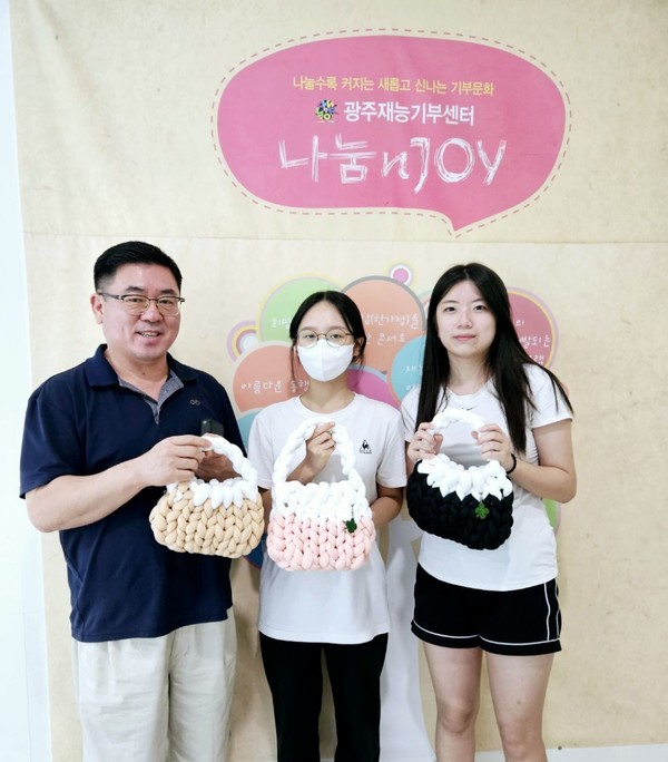 광주여상 글로벌 비즈니스과 김예림 양과 이지민 양이 벨벳자이얀트얀 가방을 기부해주시기 위해 광주재능기부센터를 방문해주셨습니다. 누군가에게 나눔을 하고자 정성스럽게 직접 만들어 기부를 해줬습니다. 가방을 기부해주신 김예림 양과 이지민 양에게 감사의 인사를 드립니다.