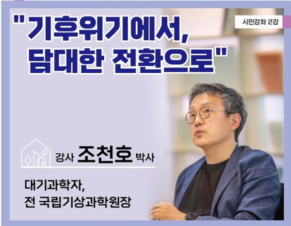 국립기상과학원장을 지낸 대기과학자 조천호 박사가 19일(화) 오후 7시 전일빌딩 245 다목적강당에서 ‘기후위기에서 담대한 전환으로’라는 주제로 강연한다.