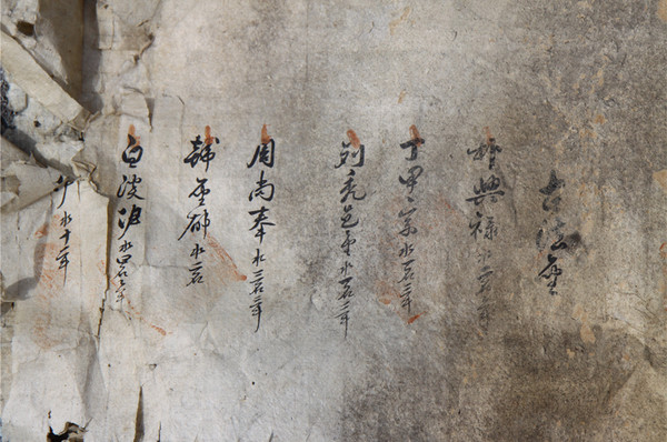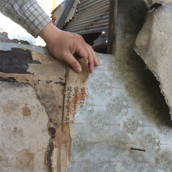 다 무너져 가는 법성진내 고가인데 건물 상량 기록(겉상량)이 있어 헤아려 보니 1829년(道光 玖年)인데 일부 부재만 걸쳐져 있어 하늘이 훤히 보인다는 것. 그리고 또 한가지는 벽에 발라진 벽지에 한문이 많이 쓰여 있어 무슨 문서 같다는 생각이 든다는 것. 목조건축으로도 오래된 연대이지만 ‘벽짝’에 발라진 문서라는 말이 더 와 닿는다.