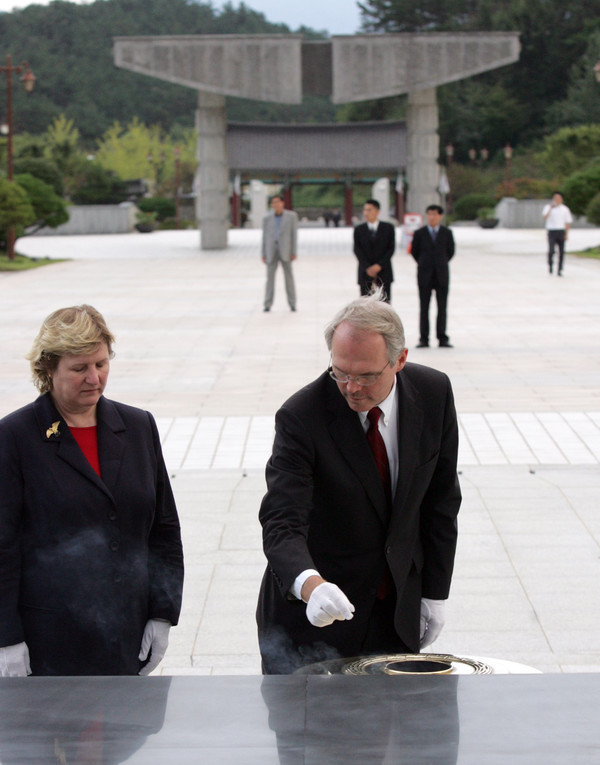 사실이었다. 그 시각 힐 대사 부부는 망월동 5·18 묘지를 참배하고 있었다.