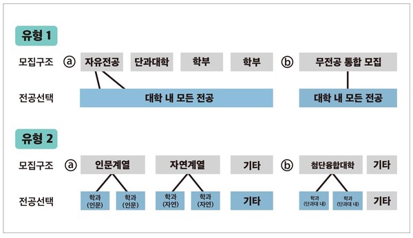 무전공제 전형은 크게 ‘자유전공제’와 ‘계열 모집’ 형식으로 구분된다.