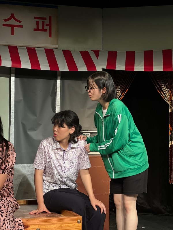 슈퍼 주인 ‘오점주’와 다방 종업원 ‘티파니 심’, 보건소 의사 ‘박보건’, 그리고 미용 유투버 ‘마이준’을 포함해 ‘봉봉’과 ‘홍반장’이 나름대로 사건을 해결해 나가려고 팀을 구성하기까지 극은 인물 설명에 시간을 제법 할애한다. 이 부분은 매우 코믹하게 구성되어 있는데, 중년의 여성(원래는 남성이었던) 캐릭터를 20대 배우가 해야 하는 데다가, 나머지 역들도 아직 경험이 부족한 20대 대학생들이 하기에는 다소 부담스러운 지점들이 있었다. 코미디인 건 알겠는데 웃기가 힘들었다. 물론, 전대 극회 단원들은 열정적이었고, 풋풋했고 최선을 다해 열심히 한다는 것을 여실히 느꼈지만 말이다.