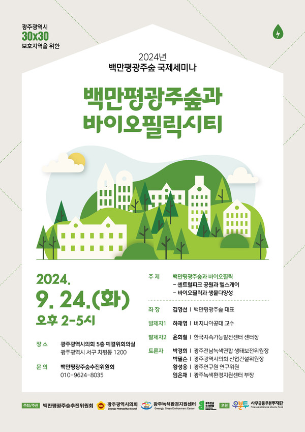 ‘백만평 광주숲과 바이오필릭시티’라는 주제로 열리는 이날 행사는 오후 2시 광주광역시의회 5층 예결위실이 무대다.