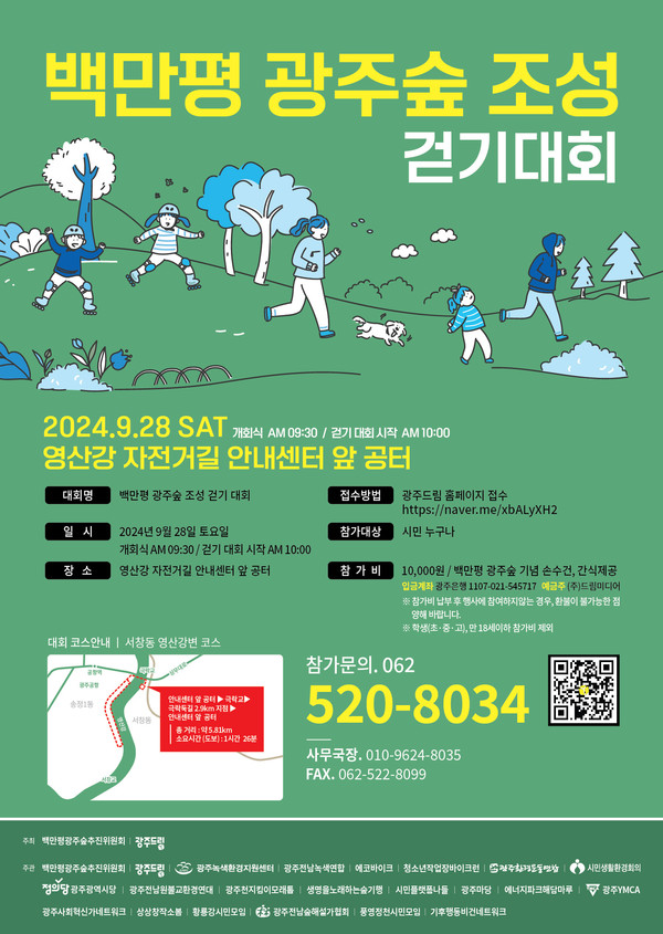 참가 접수는 광주드림 홈페이지 하단 ‘알림’이나 네이버 폼( https://naver.me/xbALyXH2)에서 가능합니다. 기타 문의: 광주드림 경영본부 062-520-8034.