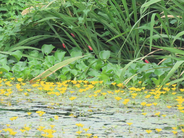 광택이 나는 잎 때문에 햇빛에 유난히 반짝이는 자라풀은 잎 뒷면에 공기주머니가 발달해있는 암수딴그루 식물이다. 8~10월에 하얀 꽃이 피는데, 임곡습지 곳곳에 꽃을 피우고 군락을 이루고 있는 자라풀을 볼 수 있다. 이 꽃, 저 꽃을 부지런히 옮겨 다니는 네발나비를 쫓아 시선을 돌리니 영산강에서 만났던 노랑어리연꽃이 이곳 임곡습지에서도 활짝 꽃을 피우고 있다. 알고 있는 친구를 만난 것처럼 반갑다.