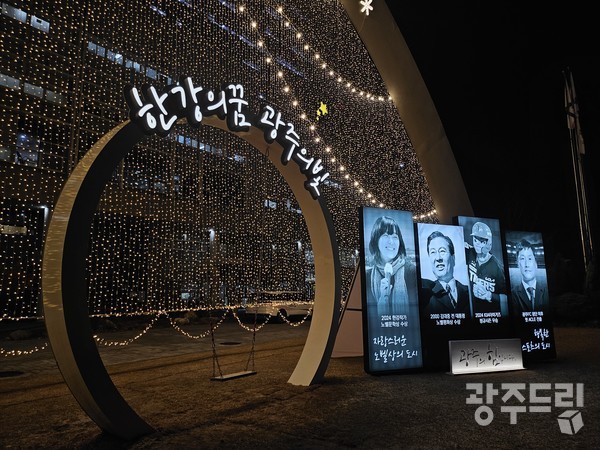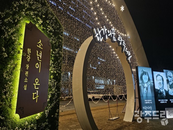 높이 12m, 길이 49m 크기의 아치형 구조물인 ‘빛고을 무지개’에 발광다이오드(LED)로 조명을 설치하고, 전면부에는 한강 작가의 노벨상 수상을 기념하는 포토존을 조성했다.