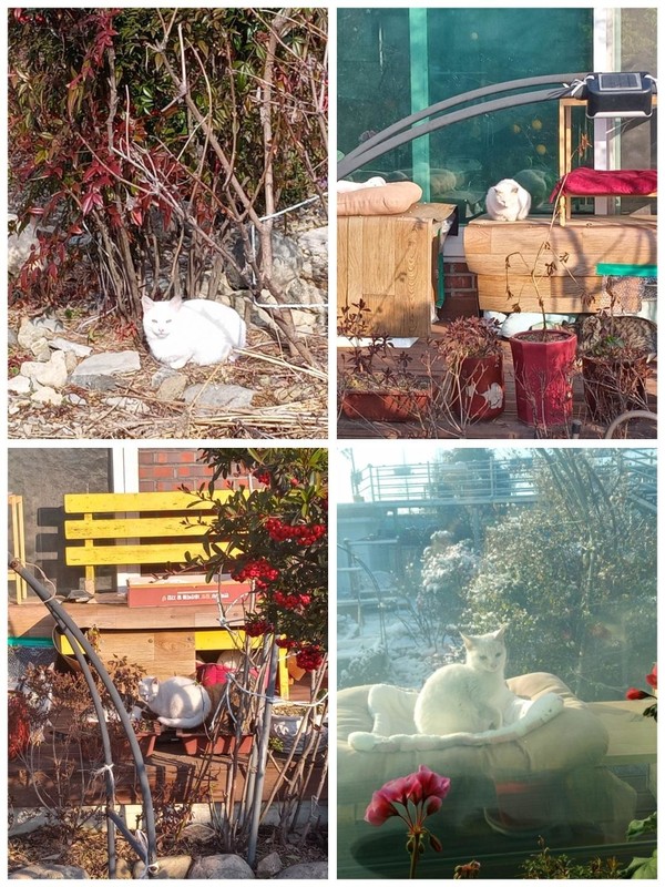 2025년이 시작되고, 며칠 지나지 않아 마당에 못 보던 새끼 흰냥이가 나타났습니다. 여느 냥이들처럼 집사들을 보자마자 내빼기 급했습니다. 쫓은 것도 아닌데.