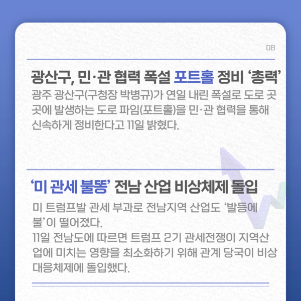 광산구, 민·관 협력 폭설 포트홀 정비 '총력'