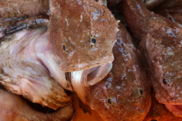 아귀조업을 마치고 뭍으로 올라오는 아귀들을 보면 입안에 생선 한 마리씩 물고 있는 모습을 곧잘 볼 수 있다. 아귀가 잡히면 버렸다는 말은 옛말이다. 이제 어물전 상석에 앉아 대접을 받는다.