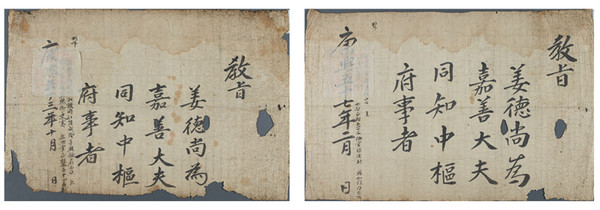 그래서 공명소첩(空名小帖)도 함께 발급해주기도 했다. 강덕상의 경우 납속했음을 증명하는 첩도 받은 것으로 보인다.