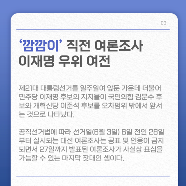 '깜깜이' 직전 여론조사 이재명 우위 여전