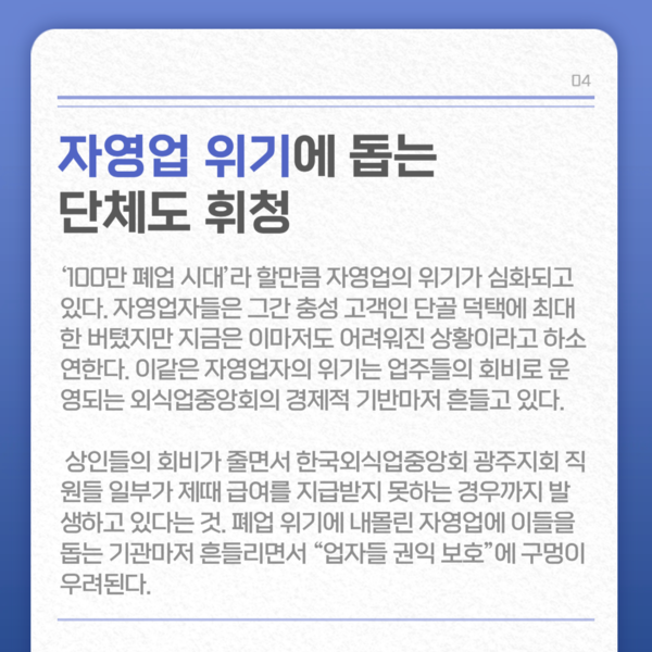 자영업 위기에 돕는 단체도 휘청