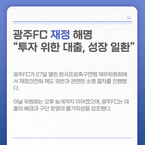 광주FC 재정 해명 "투자 위한 대출, 성장 일환"
