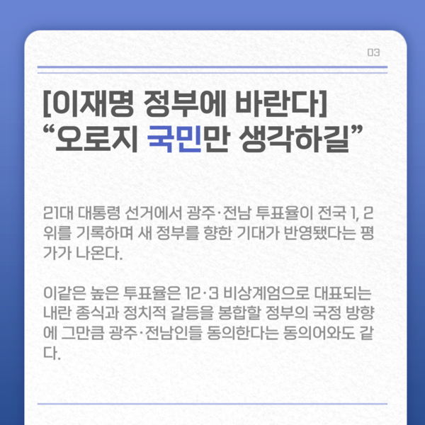 [이재명 정부에 바란다] 광주 시민들 "오로지 국민만 생각하길"
