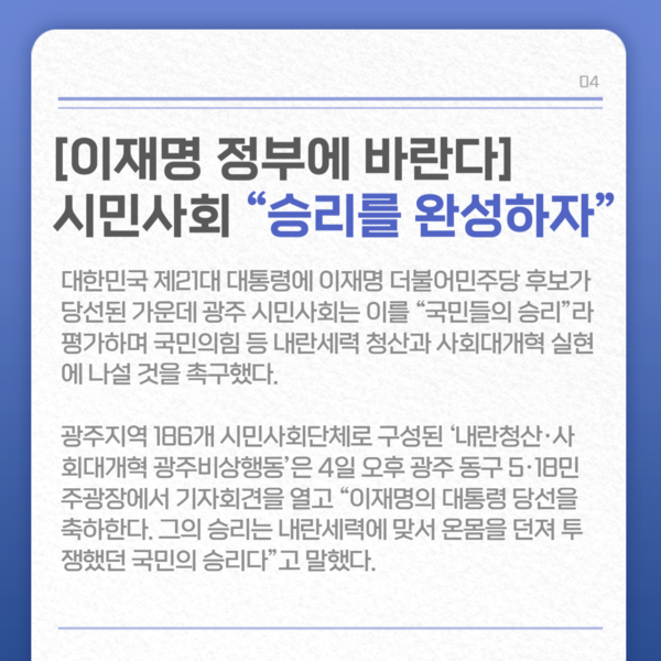 [이재명 정부에 바란다] 광주시민사회 "승리를 완성하자"