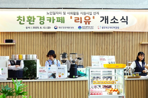 한편, 노인일자리 수행기관인 광주서구시니어클럽(추왕석 관장)의 그간의 축적된 카페운영 경력이 친환경카페로 인해 한층 진보할 것으로 보여 노인일자리가 긍정적으로 인식되는 계기를 마련하게 되었다.