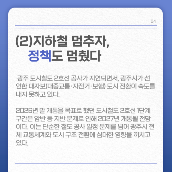 [광주 대·자·보 1년…도시 습관을 바꾸자] (2)지하철 멈추자, 정책도 멈췄다