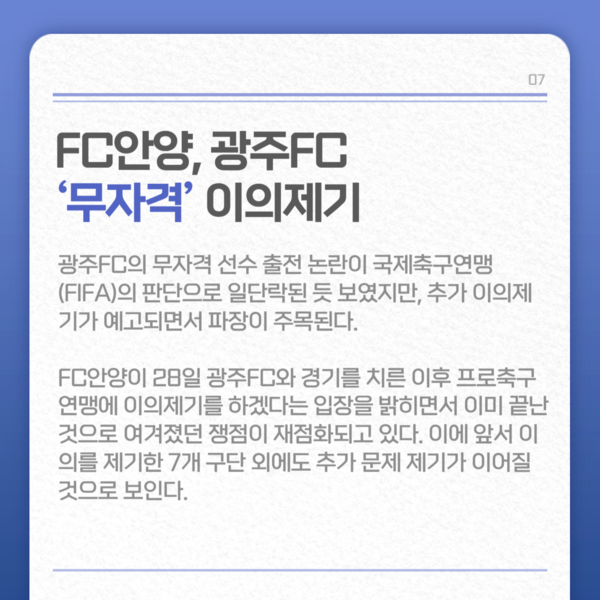 FIFA 발표로도 봉합 안돼… FC안양, 광주FC ‘무자격’ 이의제기