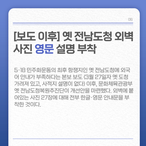 [보도 이후] 옛 전남도청 외벽 사진 영문 설명 부착
