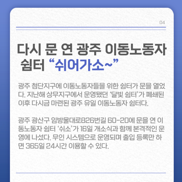다시 문 연 광주 이동노동자 쉼터 "쉬어가소~"