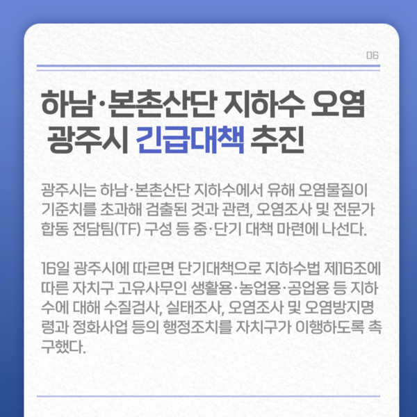 하남·본촌산단 지하수 오염 광주시 긴급대책 추진