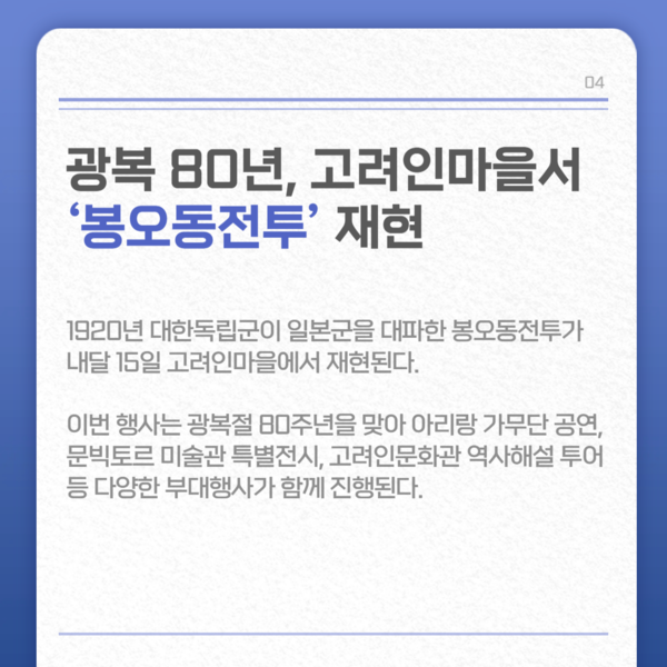 광복 80년, 고려인마을서 '봉오동전투' 재현