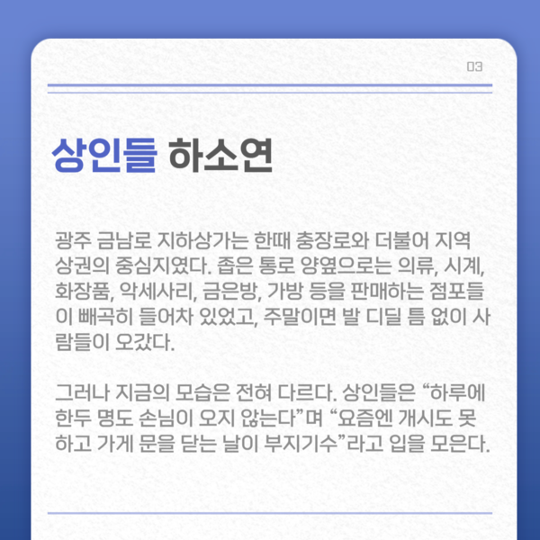[금남지하도상가 볕들 날 언제] '차 없는 거리' 상인들 단상