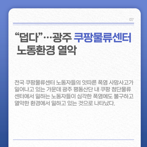"덥다"...광주 쿠팡물류센터 노동환경 열악