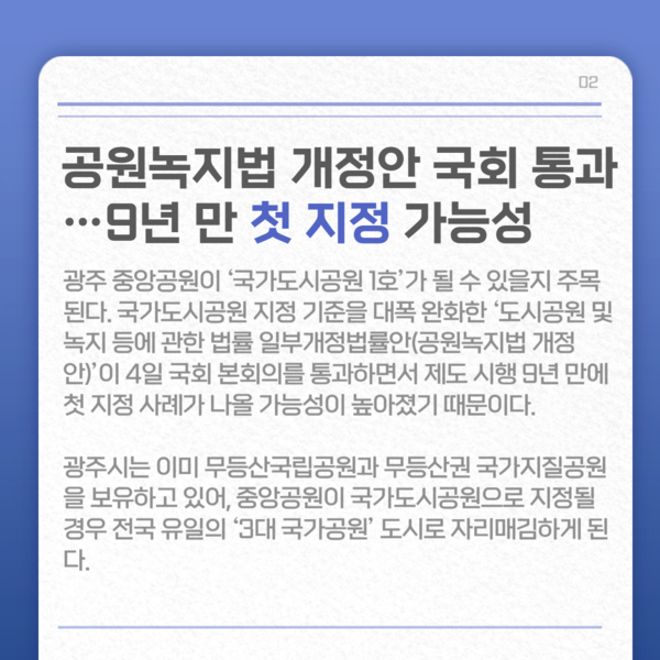 광주 중앙공원 '국가도시공원 1호' 청신호
