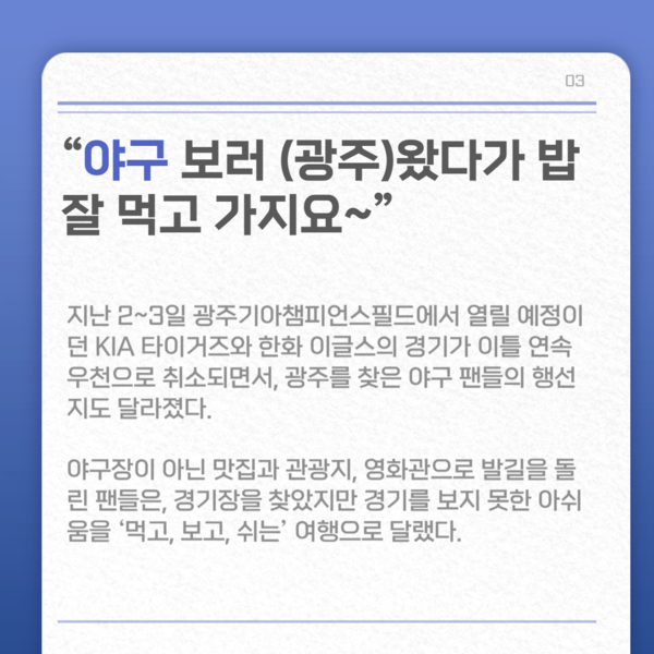 "야구 보러 (광주)왔다가 밥 잘 먹고 가지요~"