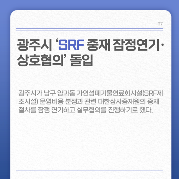 광주시 'SRF 중재 잠정연기·상호협의' 돌입