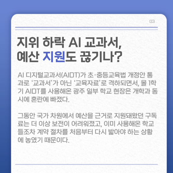 지위 하락 AI 교과서, 예산 지원도 끊기나?