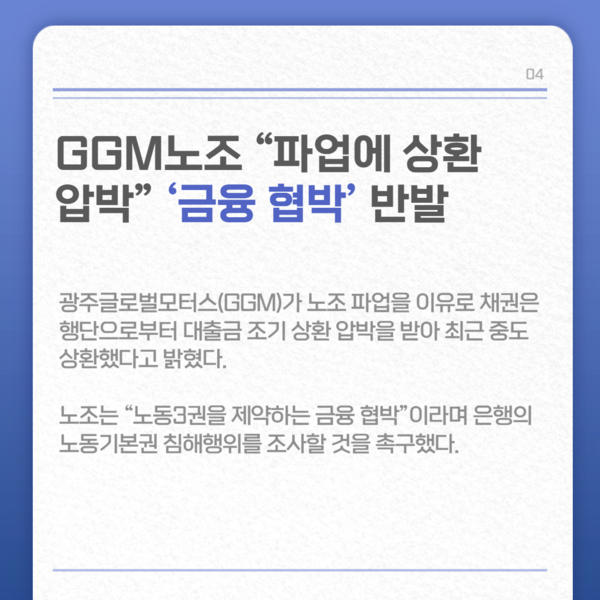 GGM노조 "파업에 상환 압박" '금융 협박' 반발